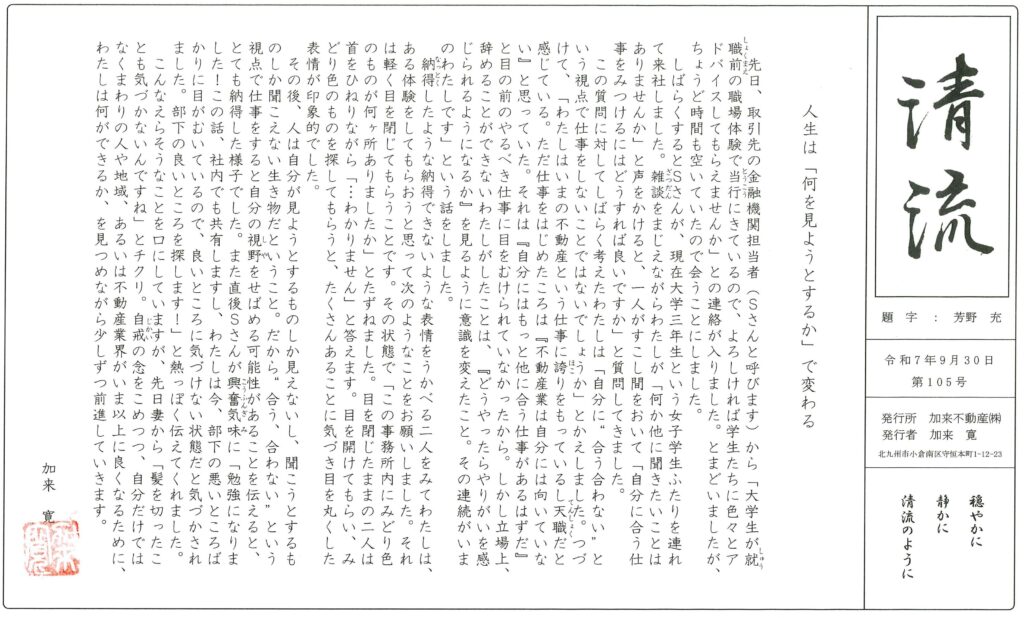 月刊「清流」105号発行しました。