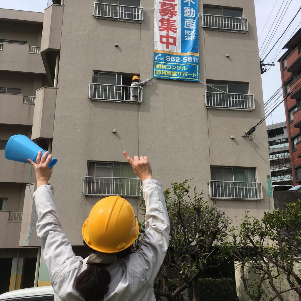 「今井さん、入居者募集の横断幕を現地につけてきてくれるかな
