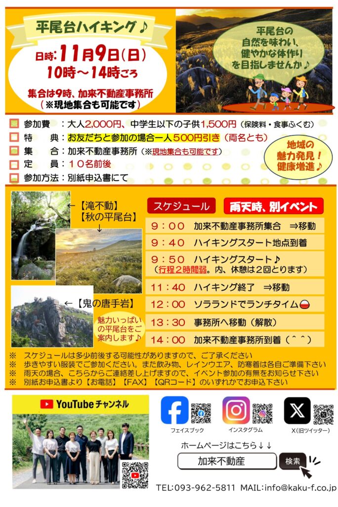 11/9(日)の平尾台ハイキング、お気軽にご参加ください♪お待ちしております(^^)v
